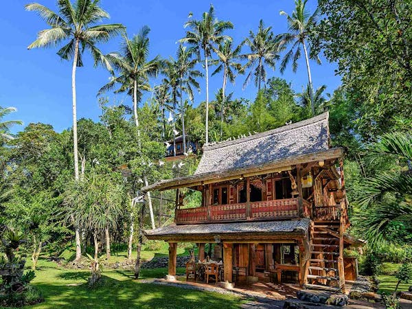The Kudus Suites are set within a secluded corner of the estate, are housed in a beautifully preserved old Javanese Kudus House, offering two expansive sanctuaries of heritage and refined comfort. The ground-floor suite opens onto lush tropical gardens, while the lofty upper suite captivates with soaring cathedral ceilings and a private walk‑in dressing room. Each suite exudes character and understated luxury, complete with private terraces and indulgent en‑suite bathrooms for an intimate retreat.